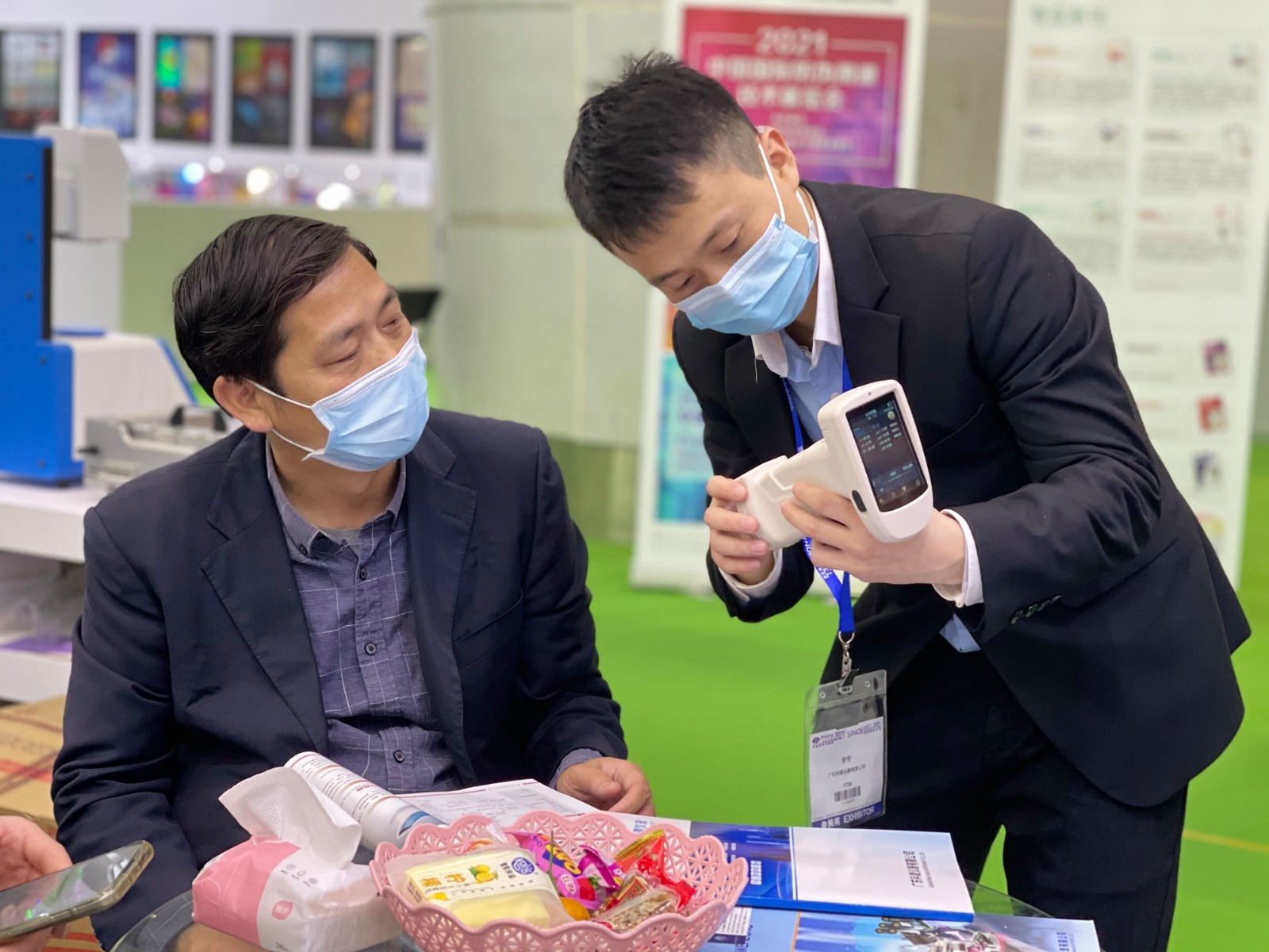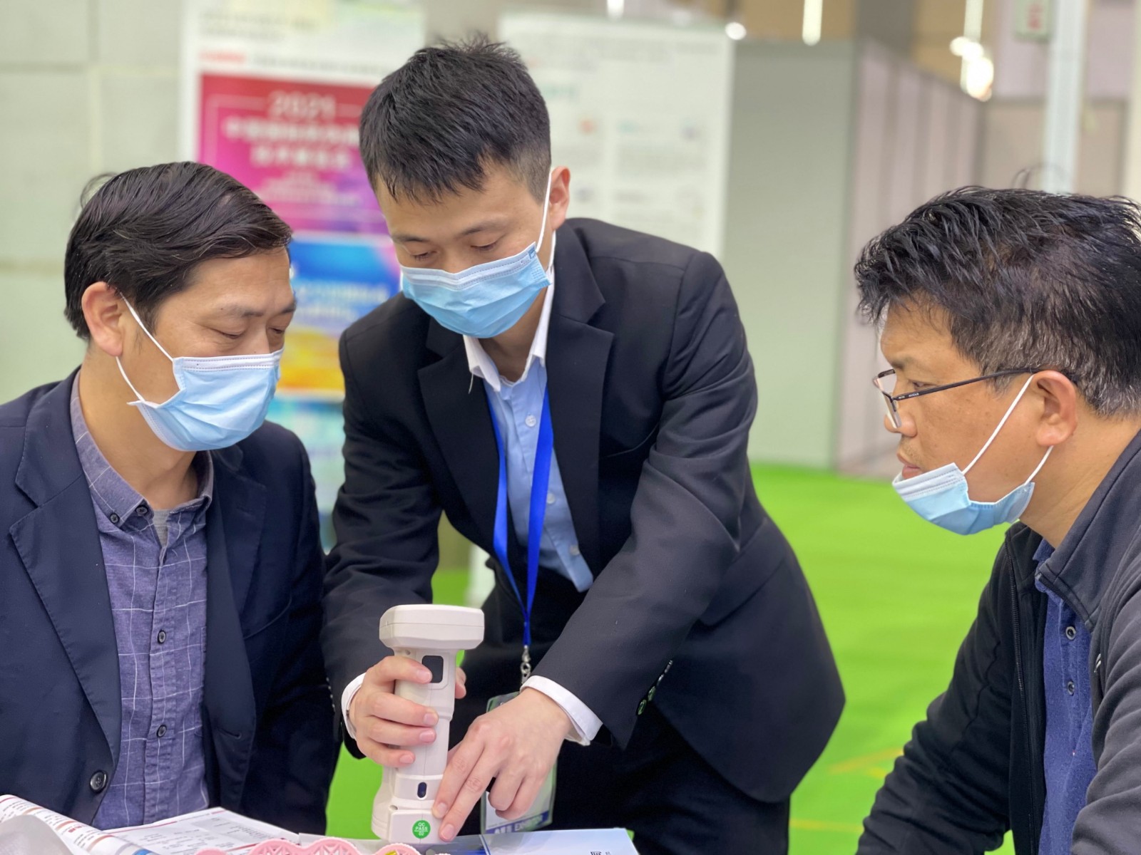 不落下任何參觀的客戶,講解著產(chǎn)品的使用
