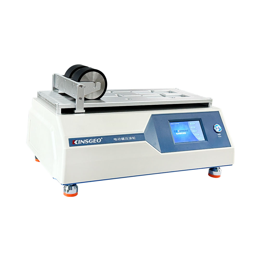 電動(dòng)碾壓滾輪用于膠粘帶剝離強(qiáng)度、持粘性等試驗(yàn)用試件的制備。以固定的壓力及速度,將膠粘帶試樣規(guī)范平整,均勻的粘著于標(biāo)準(zhǔn)的試驗(yàn)基材上。